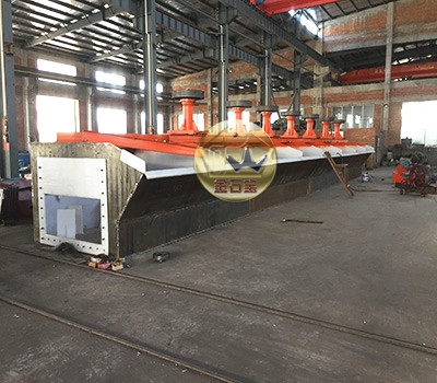 XJK浮选机属于一种带辐射叶轮的空气自吸式机械搅拌浮选机,该型浮选机具有搅拌力强,药剂耗量较少, 充气量大,生产能力大,功耗低,维修方便,可以处理粗粒和较大密度的矿石 ,能适应复杂流程 ,应用广泛, 指标稳定等优点。每槽兼有吸气、吸浆和浮选三重功能,自成浮选回路,不需任何辅助设备,水平配置,便于流程的变更。矿浆循环合理,能减少粗砂沉淀。