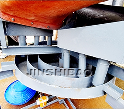 接矿斗是一个同心环形筒,可以将4个产品截取槽的截取的精矿、中矿、尾矿按类别汇集在一起导送至下一作业。接矿斗的槽