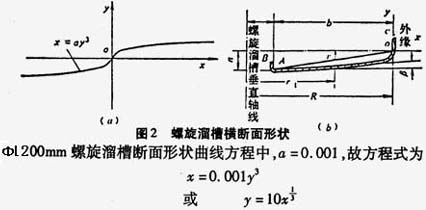 螺旋槽是螺旋溜槽的主体部件,矿物的分选过程是在螺旋槽内完成的。螺旋槽的断面轮廓线为一立方抛物线,方程式
