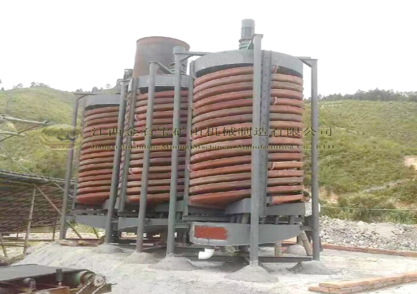 螺旋溜槽由分矿斗、给矿槽、螺旋槽,产品截取槽、接矿槽和槽钢支架(包括十字架或三角架)电机、振动电机等八