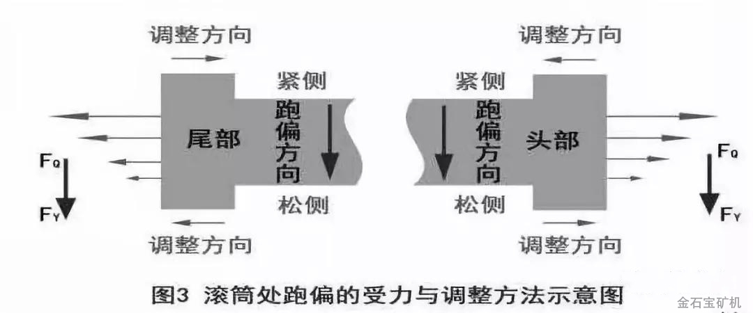 *输送带跑偏方向不定,忽左忽右,这是输送带较松的缘故,应调整输送带的松紧程度,不应按照跑偏处理。